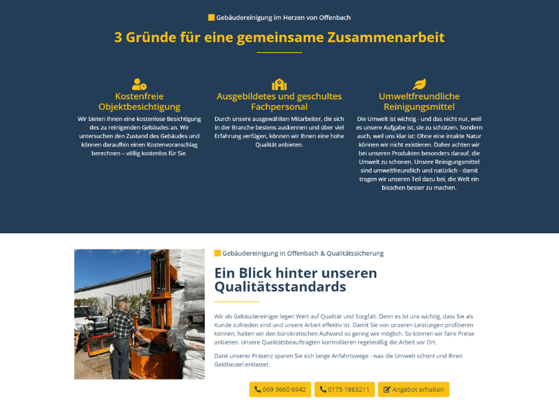 A&G Gebäudereinigung bietet umfassende Reinigungsdienste in Offenbach und Umgebung. Das Leistungsspektrum umfasst Büro-, Glas-, und Unterhaltsreinigung sowie Winterdienst und Hausmeisterservice. Mit umweltfreundlichen Reinigungsmitteln und qualifiziertem Personal sorgt das Unternehmen für Sauberkeit und Werterhalt Ihrer Immobilien.