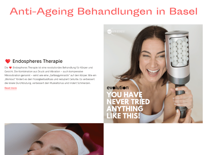 Kosmetik Basel bietet spezialisierte Anti-Aging-Behandlungen für Gesicht und Körper. Das Studio verwendet hochwertige, organische und innovative Produkte, um die Haut zu verjüngen und zu straffen. Besondere Behandlungen umfassen HydraFill, Microneedling und Endospheres Therapie.