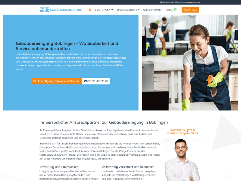 SB Gebäudereinigung bietet umfassende Reinigungsdienste in Böblingen und Stuttgart, spezialisiert auf Büro-, Glas- und Grundreinigung. Das Unternehmen nutzt moderne Ausrüstung und umweltfreundliche Produkte für optimale Sauberkeit.